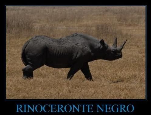 El rinoceronte negro o de labio ganchudo (Diceros bicornis) es una especie de mamífero perisodáctilo de la familia de los rinoceronte (Rhinocerotidae). Es uno de los dos rinocerontes que habitan en la sabana africana. Está actualmente extinto por la caza furtiva, es perseguido por su cuerno que en china dice tener propiedades curativas, y en África propiedades afrodisíacas.